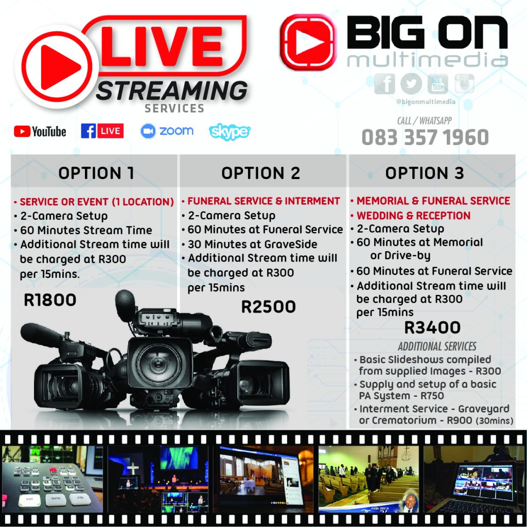VIDEO PRODUCTION FUNERAL & MEMORIAL LIVE STREAMING LIVE EVENT STREAMING KIDS KINGDOM – WITH BOETA B STADIUM MEAT MARKET | ADVERT BLOEMENDAL MOTORS | ADVERT STRICTLY OLD SCHOOL | EVENT COVERAGE EVENT HIGHLIGHT VIDEOS